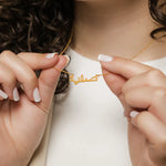 Gravé en calligraphie arabe, votre prénom ou mot doux prend vie à travers un bijou personnalisé, élégant et unique.
